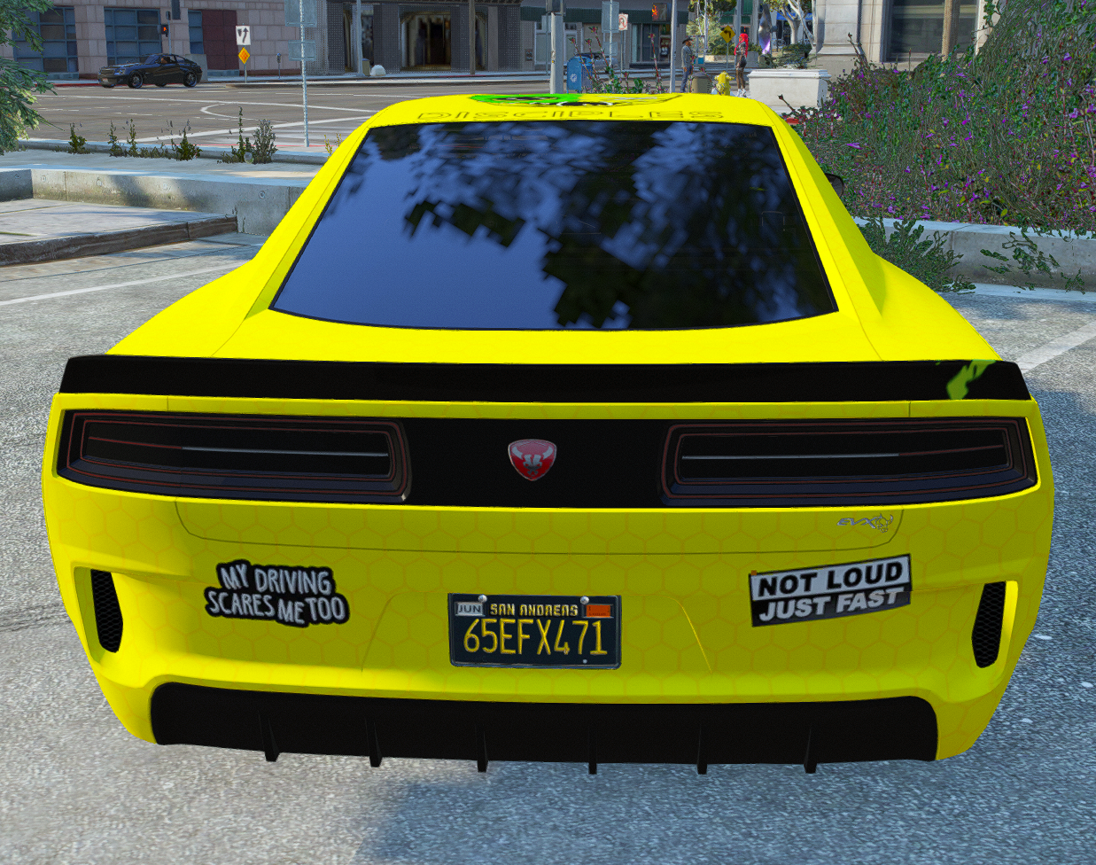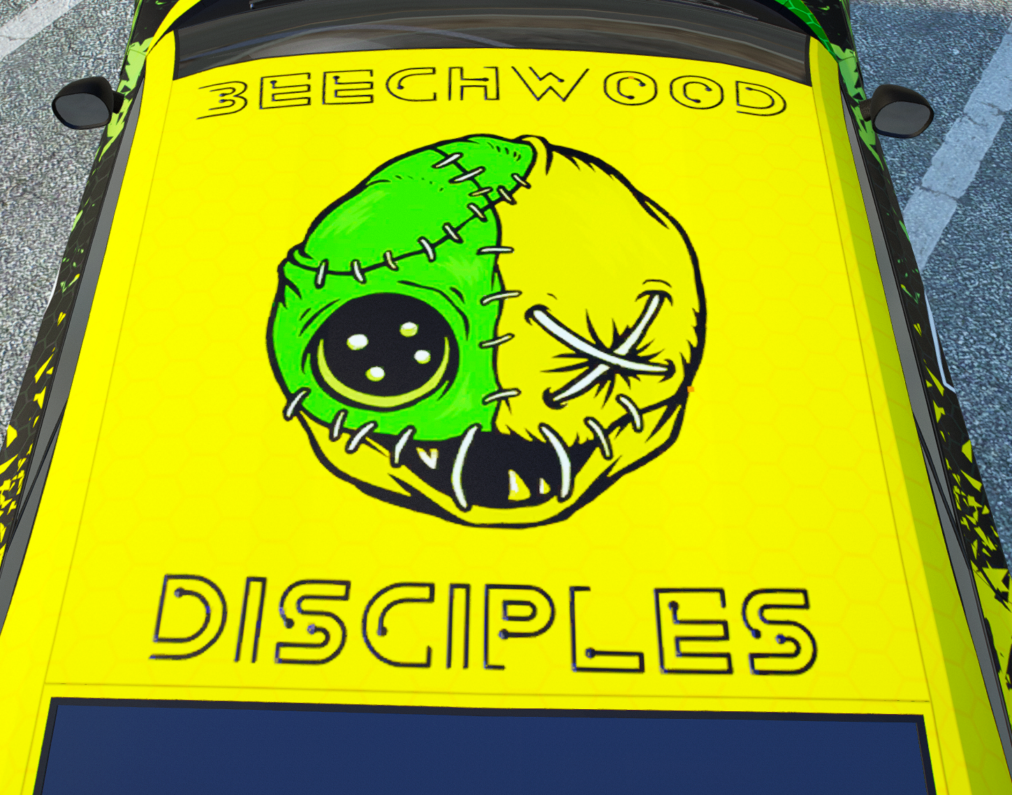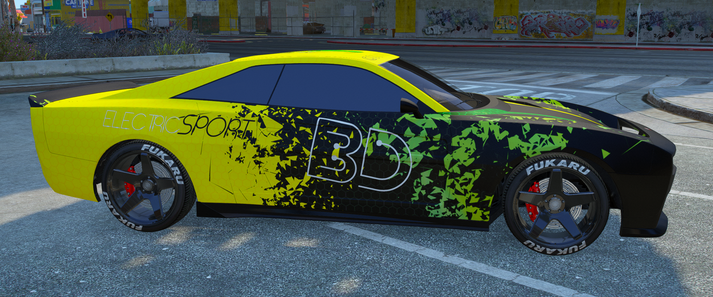 This fully electric 2 seater has an extremely rare livery from the now disbanded gang Beachwood Disciples (BD), It's an extremely clean and sought after livery that is sure to catch the eye of any old citizens of Los Santos.